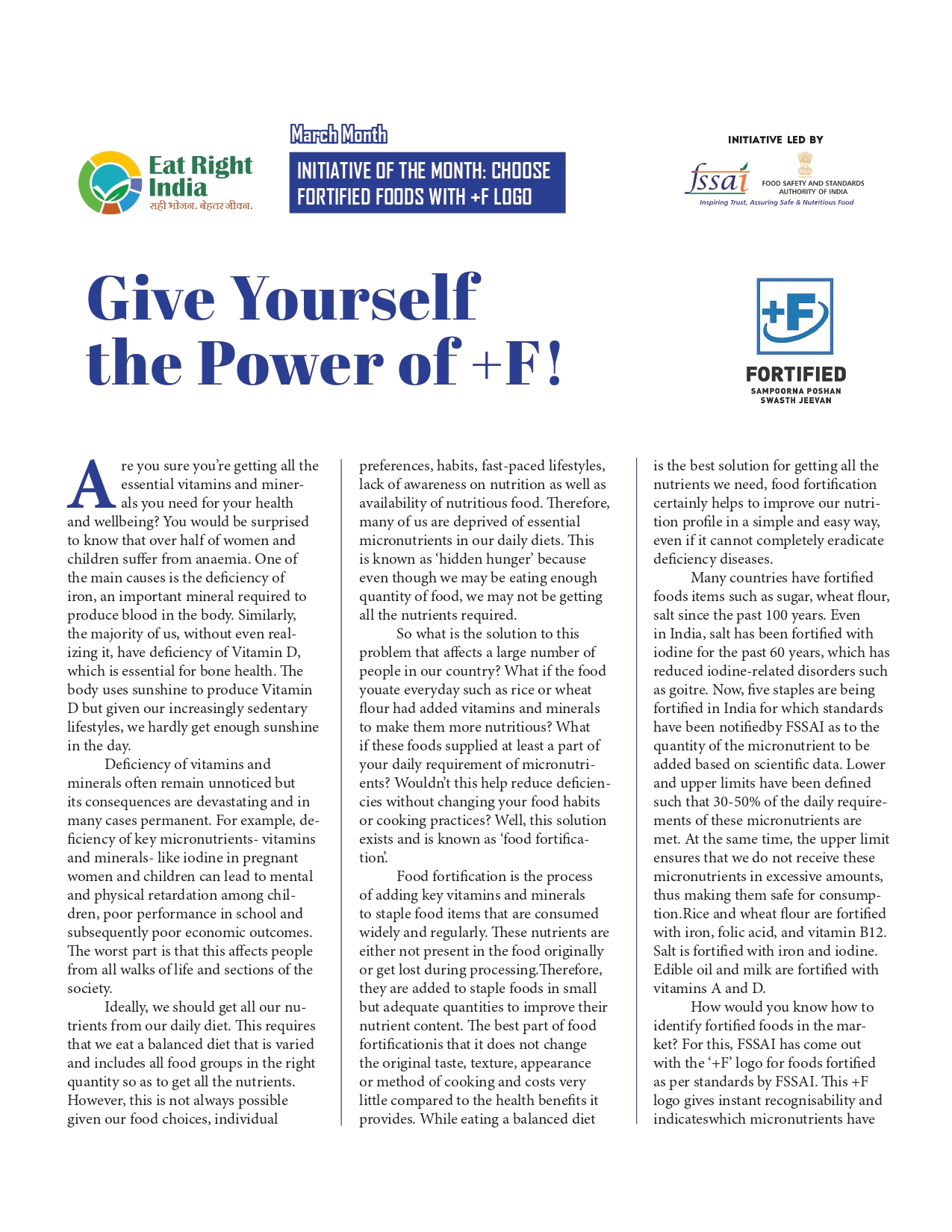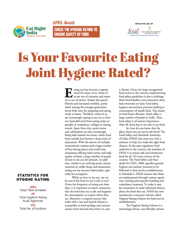 FSSAI provides content for media articles on its various initiatives and activities. Some of these articles appear as standalone features or as series.